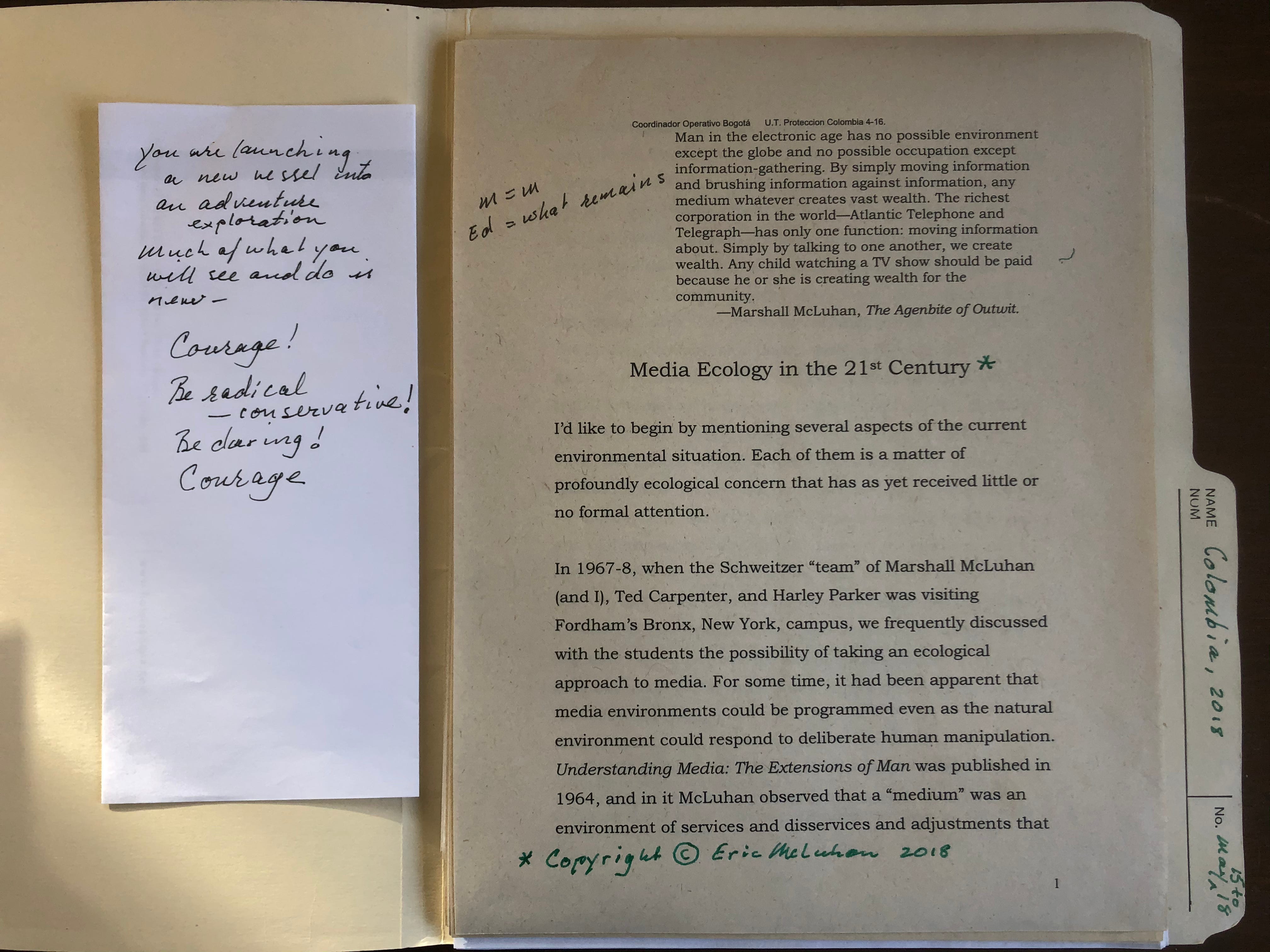 ‘Media Ecology in the 21st Century’ delivered May 17, 2018, would be his last word on many matters.